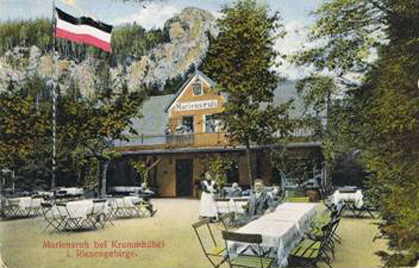 Beim "Rabenvater", dem urwüchsigen Wirte Ehrenfried Brauner, hatte der Dichter schon im Jahre zuvor des öfteren Einkehr gehalten. Hier scheint er auch die ersten Anregungen zum "Quitt" empfangen zu haben. Die nahe Försterei, die Erzählungen der Wirtsleute und der Hauptgäste, der Holzfäller, Fuhrleute und Gebirgsführer, mögen den Wunsch verstärkt haben, den Förstermord vom Jahre 1877 dichterisch zu verarbeiten. Gleich daneben "Mariensruh", auch hier stand später das "Breslauer Kinderheim". Die Wirtin, Fräulein. Wollmann, hatte ihr Lokal zu einem Treffpunkt der Feinschmecker gemacht und Fontane wusste das zu schätzen.